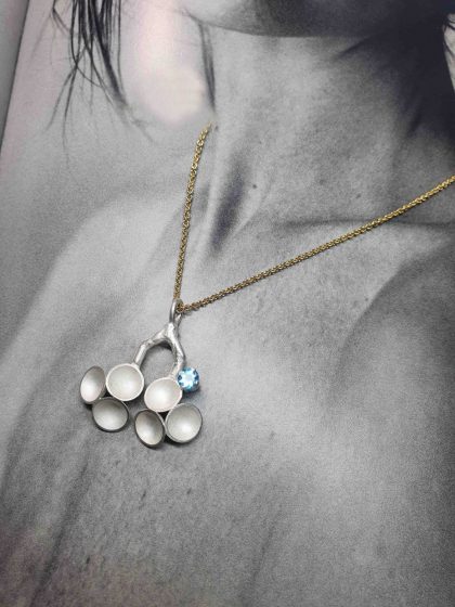 Collier aus Silber mit Aquamarinkugeln,680Euro